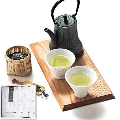 本格茶葉の緑茶セットです。産地の茶畑を思い浮かべながら落ち着いた憩いのひとときをお楽しみください。